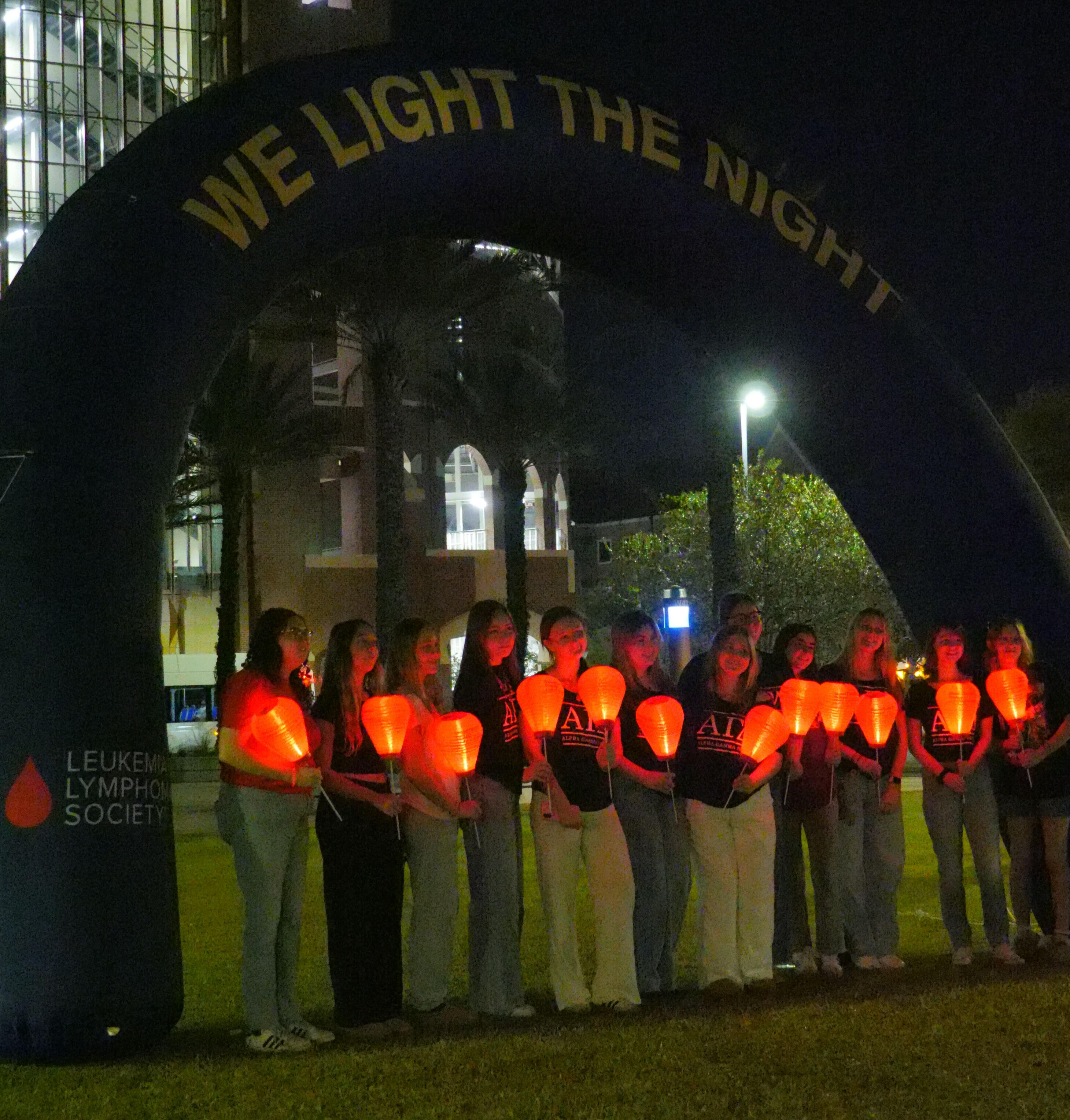Every fall, when Florida State University (FSU) students and faculty come together to walk a mile with glowing lanterns, they’re not just lighting up the night; they’re lighting a path toward awareness, research, and support for those impacted by blood cancer.On Wednesday, Nov. 5, Light the Night (LTN), a student-led movement dedicated to supporting those impacted by diseases such as leukemia, lymphoma, and myeloma, continued its mission. Through fundraising and community engagement, participants helped raise thousands of dollars for critical research in partnership with Blood Cancer United (BCU). BCU is a nonprofit organization that provides free and personalized support services for patients, survivors, and their families. Their services include information, financial assistance, and clinical support.“We’re currently sitting at about $90,000, and that number is projected to increase after the event,” said LTN President Carys Delahanty.Blood cancers are aggressive and often develop silently, making these illnesses much more common and dangerous than many people realize. Every three minutes, someone in the United States is diagnosed, and approximately every nine minutes, a life is lost to these diseases. Additionally, childhood leukemia remains the most common cancer among children and teens. With numbers that staggering, LTN focuses on honoring those touched by blood cancer. This event held personal weight for LTN’s Vice President of Logistics Sydney Fairs.“My grandpa passed from leukemia in 2020, so when I came to Florida State, I really wanted to get involved,” she said. “And then, when I was a sophomore, my dad was diagnosed with leukemia. I was already involved with Light the Night, but last year, he actually passed away from leukemia, and so now it just means that much more to me.”As LTN grew in size and community support over the years, the event moved from Landis Green to Langford Green. This shift allowed for more space, food trucks, and public parking to maximize the event’s participation.Hours before the walk began, the area had been transformed into a space filled with informational tables, donation opportunities, live music, and food vendors such as Sweetie Eaties, Vale Food Company, and Tally Style.“I think the event really makes a difference because it brings everyone together in the community,” said Delahanty. “Firstly, obviously the Florida State community, and we have a big, strong Greek life presence with us. And then to the Tallahassee community — which was something I really aimed to grow this year — getting as many locals to come together so we could all commemorate those who have won and lost their battle to cancer.”Students stopped by booths to connect with local organizations, including Furry Friends, a station hosted by Champs Chance that offered comfort and stress relief with therapy animals. Another participating student organization was Nole Med, which supports students pursuing careers in medicine or healthcare.“With our organization, since it’s mostly pre-health students, the goal is to raise education among the healthcare field, and in turn help healthcare professionals with research and talking to patients directly about seeking treatment plans,” said Service and Outreach Chair Maddie Markham.Other tables invited attendees to write handwritten cards for cancer patients. Nearby, a “dream wall” grew as participants added sticky notes expressing wishes, affirmations, and names of loved ones affected by blood cancer. These acts of compassion served as a reminder that emotional support is just as vital as fundraising.Toward the end of the night, two survivors, Evette O’Connor and Cole Pridgen, came forward to share their stories about their experiences battling blood cancer.
